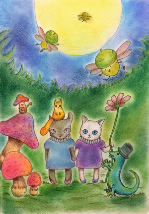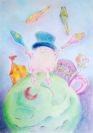 心象風景を中心に、優しいタッチで絵を描き続けています。
